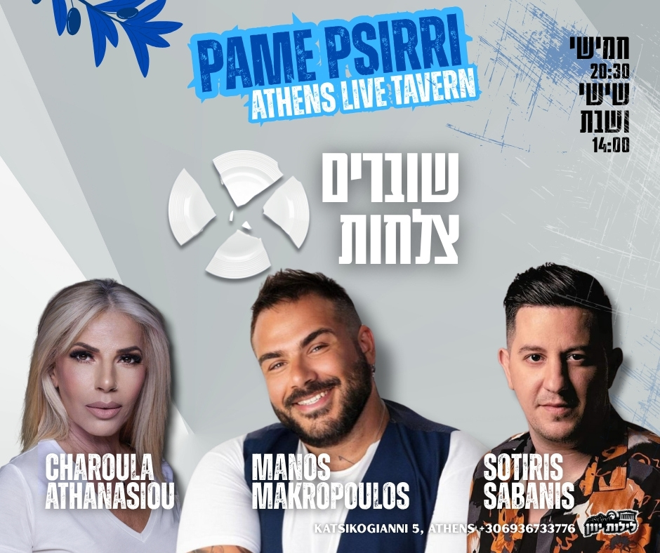 טברנת PAME PSIRRI, הממוקמת בלב שכונת פסירי המפורסמת במרכז אתונה, היא אחת מהפנינות האותנטיות של העיר, ומציעה חוויה יוונית מסורתית עם מוזיקה חיה, אוכל משובח ואווירה שמחה ותוססת. בתפריט תמצאו מנות קלאסיות כמו מזטים, סופלקי, מנות בשר עסיסיות ודגים טריים. מדי שבוע מופיעים במקום זמרים יווניים פופולאריים, שמגיעים מהבמות המובילות והבוזוקיות הכי חמות של אתונה, ומביאים תוכנית מוזיקלית מגוונת עם להיטים וקלאסיקות יווניות שישראלים אוהבים. בנוסף, מקיימים בטברנה את המסורת שחזרה להיות טרנד אופנתי – שבירת צלחות. עם עיצוב שמשלב בין אותנטיות יוונית למודרניות חמימה ואווירה יוונית סוחפת, PAME PSIRRI הוא היעד המושלם לבילוי בלתי נשכח
